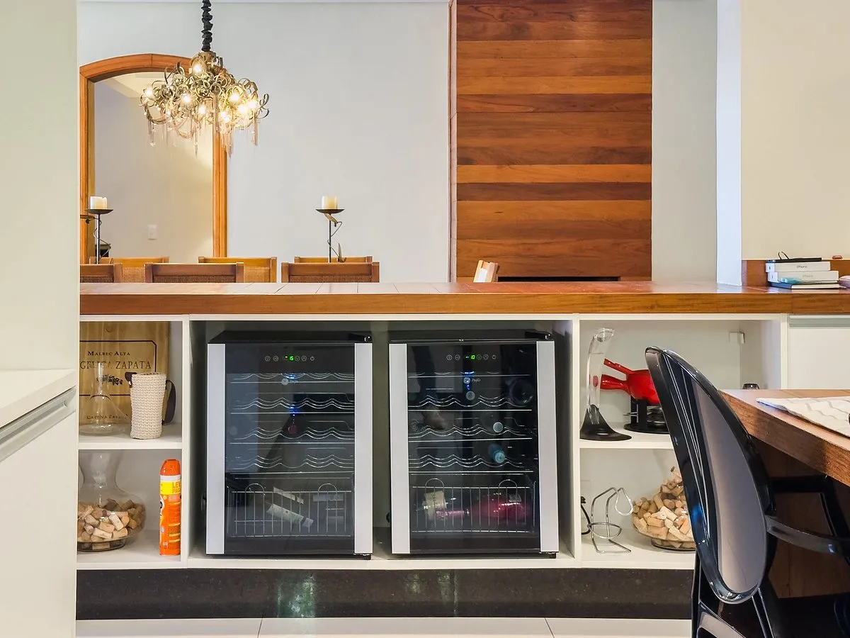A casa ainda oferece banheira independente, cozinha totalmente equipada, varanda com vista para o jardim e diversos ambientes integrados para aproveitar o dia e a noite.